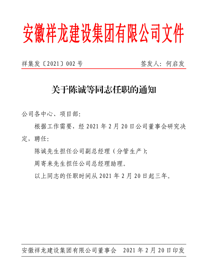 關于陳誠等同志任職的通知