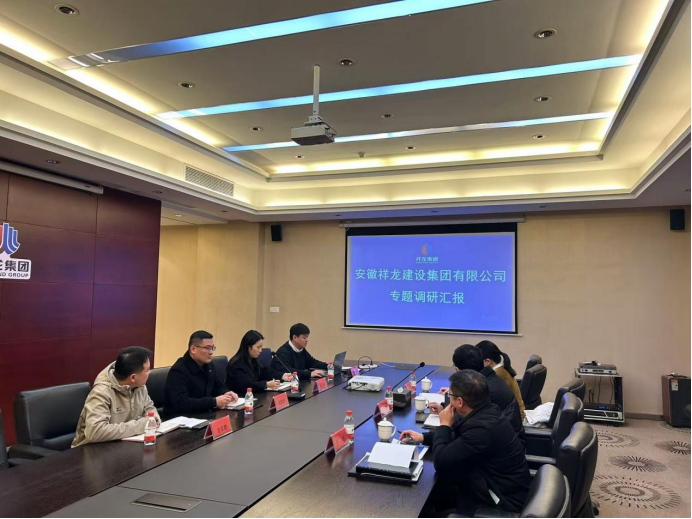 2024年12月12日下午,宣城高新投資發展有限公司投資經營部部長李軍一行到我司進行控股子公司專項調研并進行工作開展指導。安徽祥龍建設集團生產副總經理昂國華、財務資金中心經理袁卓群、行政人力中心經理桂晟及審計監察中心經理鄒敏代表公司出席會議并分別進行專題匯報。